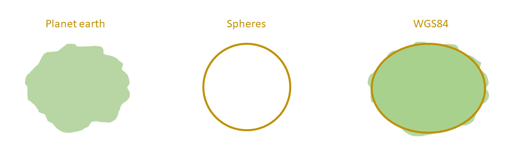 地球的形状不是完美的球形。因此,当我们试图近似地球的形状时,需要一个更好的模型。这个模型就是 WGS84 坐标系:它的坐标中心点为地球质心,采用一个十分近似于地球自然形状的参考椭球体,作为描述和推算地面点位置和相互关系的基准面。